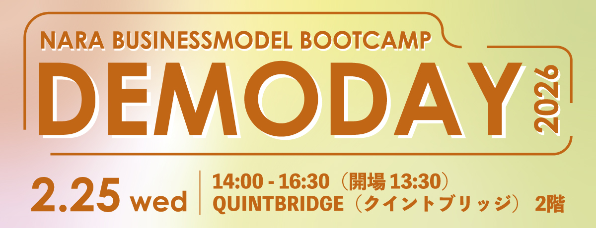 奈良県内の中小企業が“自社ならではの強み”を再定義し、新規事業の開発と、新たな価値を生み出し続ける組織づくりに取り組むプログラム「NARA BUSINESSMODEL BOOTCAMP」。 プロトタイピングを経て事業開発に挑んできた5社の熱意あるプレゼンテーションと、未来を共に創るための対話の場を開催します。